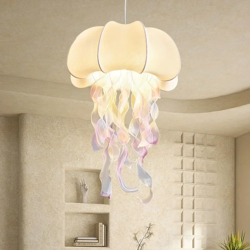 SANDYHA Jellyfish Shaped Nordic Silk Pendant Lights Chandelier Ideal for Living Room Bedroom Dining Table Stylish Lighting Decor
